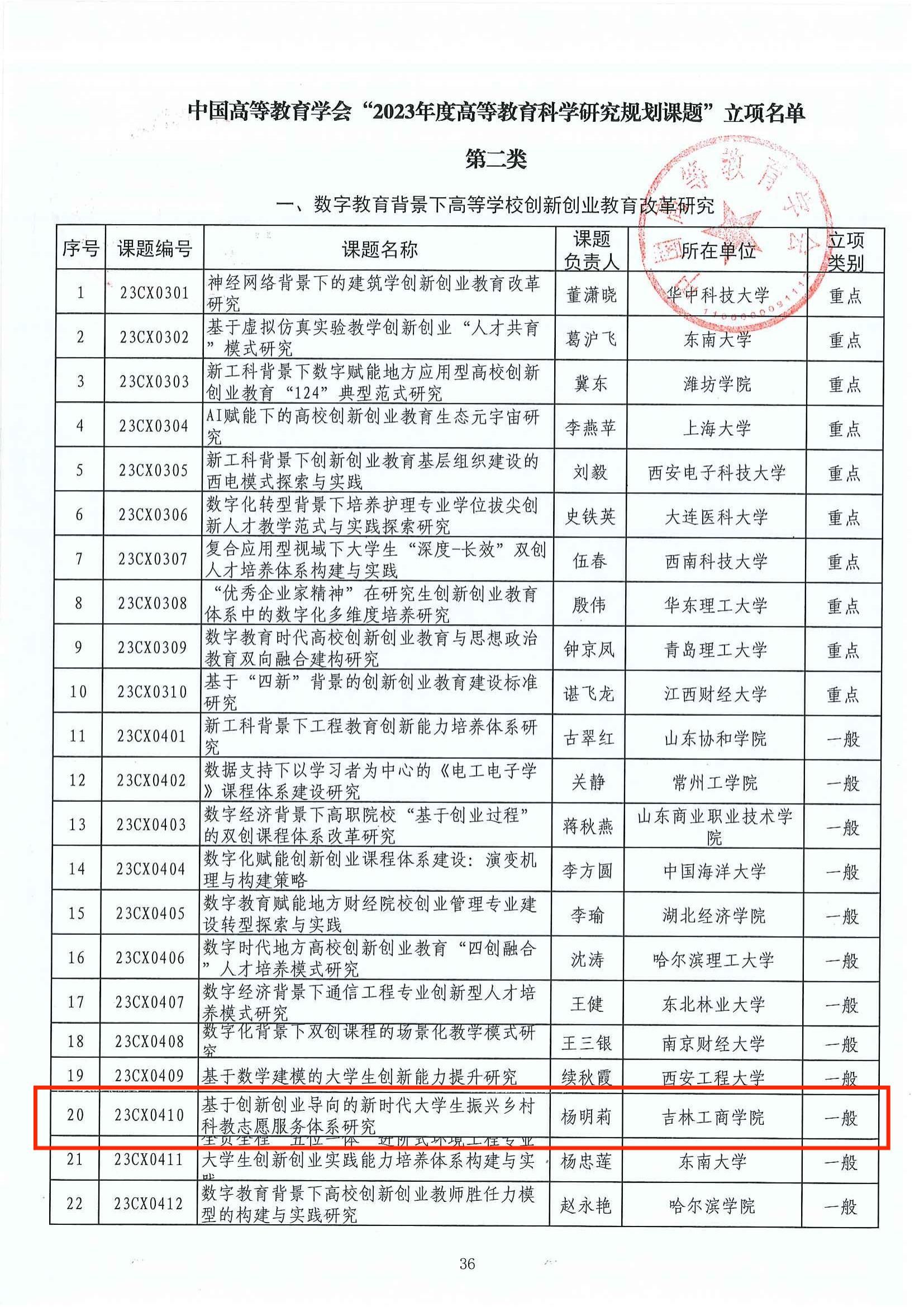 本年度中国高等教育学会规划课题申报为深入贯彻党的二十大精神,全面贯彻落实习近平总书记关于教育的重要论述和全国教育工作会议精神,加快推动高等教育高质量发展,开展有组织的教育科研而开展。我校杨明莉教授申报的《基于创新创业导向的新时代大学生振兴乡村科教志愿服务体系研究》获批第二类“数字教育背景下高等学校创新创业教育改革研究”一般课题立项。井琳老师申报的《新形态外语教材与教学资源建设研究》获批第二类“新时代高校外语教育高质量发展研究”一般课题立项。